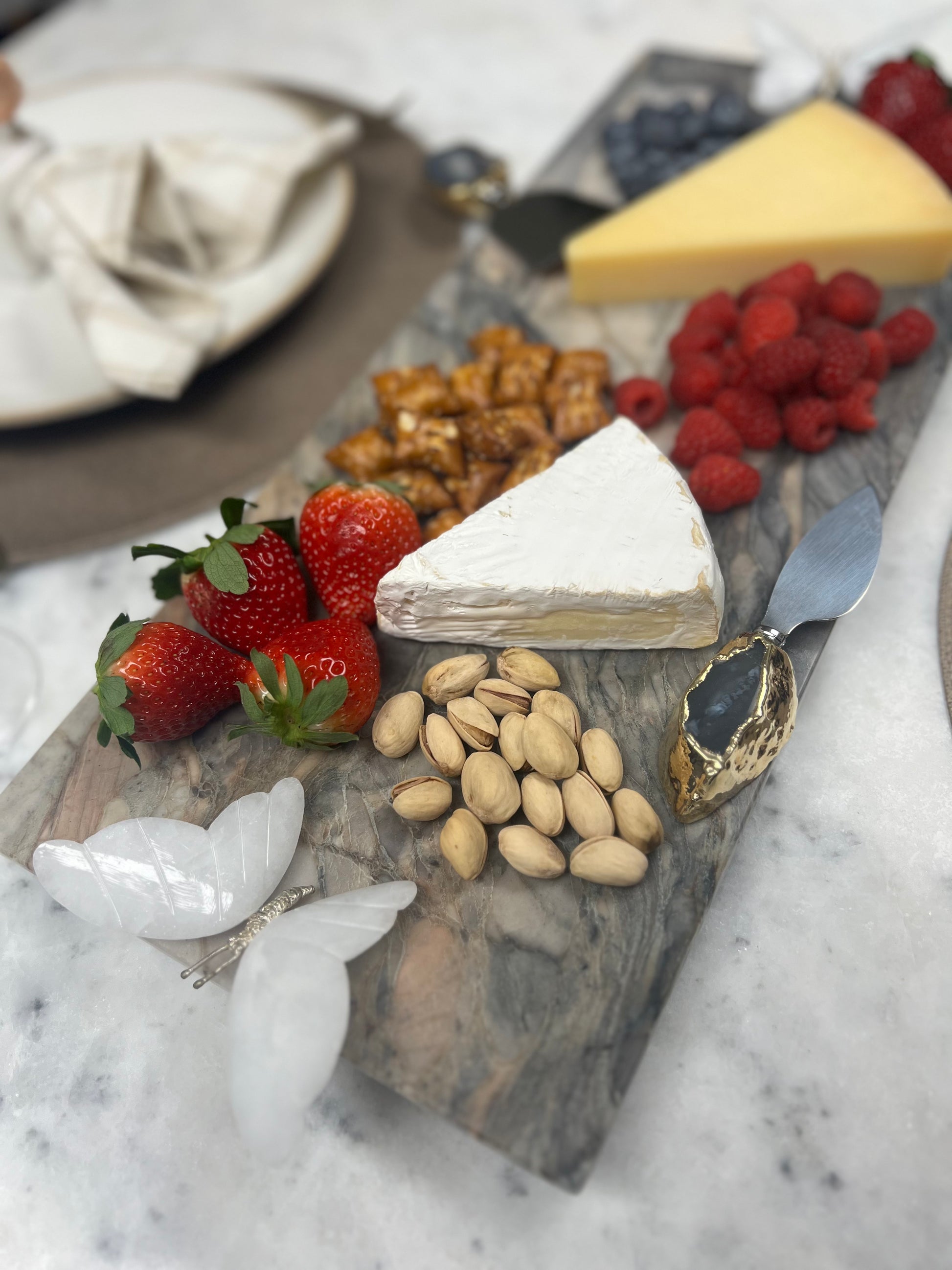 Natural Fusion Quartzite & White Marble Butterfly Tray: 19.75"x 8.12"x 0.75"